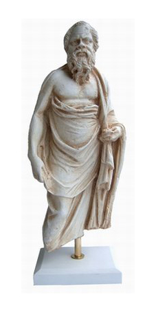 Tento filosof žil v letech 469-399 př. n. l. Vynikal svou morálkou, kterou neváhal odvážně šířit. Byl lživě obviněn z toho, že kazí mládež a neuznává bohy, a poté odsouzen k smrti. Ctil však zákony athénské společnosti a přijal smrt se stejným klidem a odvahou, s jakou prožil celý svůj život. Originál pochází z 2. st. př. n. l. a nachází se v Britském muzeu v Londýně.