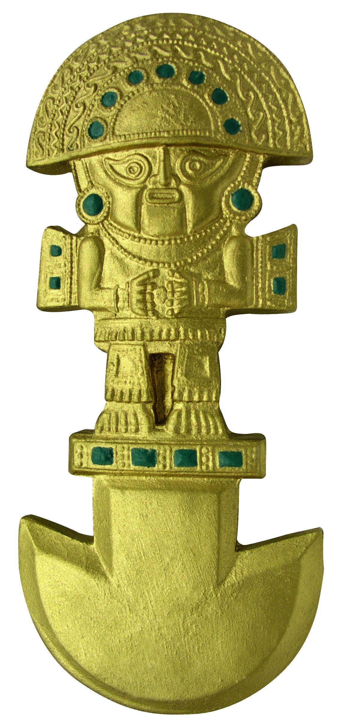 Thumi je ceremoniální nůž. Podle chimúské legendy je na něm zobrazeno božstvo s antropomorfní postavou a křídly, které se dá identifikovat jako král Naymlap. Kultura Chimú je dnes zařazována do období mezi 11. a 15. stoletím. Národ Chimú obýval Mochické údolí v Peru.