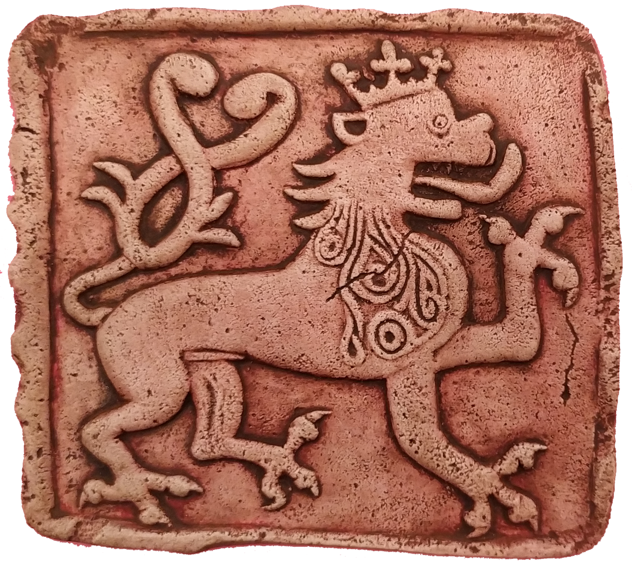 Tento motiv pochází z kachle asi z 15. století. Je na něm zobrazen lev jako symbol české státnosti s královskou korunou na hlavě. Lev se často objevuje jak v heraldice, tak i v symbolismu různých kultur. Je to zvíře se slunečními charakteristikami a představuje mimo jiné sílu, moc a spravedlnost.