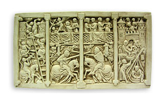 Tato krásná řezbářská práce zobrazuje rytíře bojující při turnaji. Turnaje sloužily jako trénink pro skutečný boj. Ten měl být veden ve jménu ideálu rytířských ctností. Být rytířem neznamenalo jen obstát v boji, ale být především příkladem statečnosti a ušlechtilosti. Reliéf se nachází na jedné straně dřevěné truhlice pocházející ze 14. století z města Ravenny.