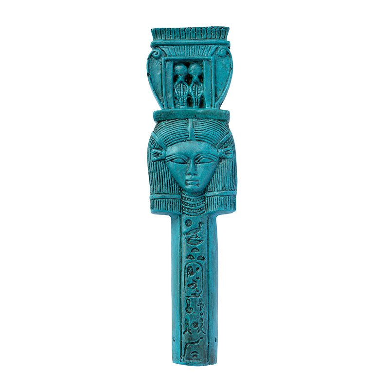 Byl to obřadní nástroj používaný v kultu bohyně Hathor nebo Isis a zároveň byl jejich atributem. Vydával zvuk podobný šelestění větru v papyrových houštinách, který zaháněl veškeré zlo od všech živých bytostí. Většinou se jednalo o tyčovou rukojeť ozdobenou hlavou bohyně Hathor, ke které byla připevněna plechová obroučka s drátky s navlečenými plíšky či jinými předměty, které vydávaly zvuk.