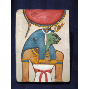 Sachmet (mocná) s Ptahem a synem Nefertuem tvořila triádu Memfidy. Je bohyní neúprosného osudu, v Egyptě symbolizovala vůli a zákon. Proto i provázela faraona ve válce, která byla znovuobnovení zákonného pořádku.Tento reliéf je z hrobky Montuhirchepésefa, syna Ramesse IX.