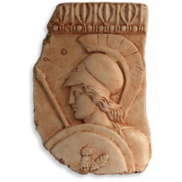 Řecká bohyně Athéna byla dcerou nejvyššího boha Dia. Byla bohyní moudrosti a vítězné války, ochránkyní práva, spravedlnosti, umění a řemesel. Dle symboliky mýtů byla zosobněním Diovy moudrosti a síly. Od počátku až do konce klasického Řecka byla ochrannou bohyní Řeků a patronkou Athén. Tento reliéf se nyní nachází v Archeologickém muzeu v Athénách.