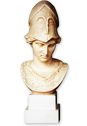 Řecká bohyně Athéna byla dcerou nejvyššího boha Dia. Byla bohyní moudrosti a vítězné války, ochránkyní práva, spravedlnosti, umění a řemesel. Dle symboliky mýtů byla zosobněním Diovy moudrosti a síly. Od počátku až do konce klasického Řecka byla ochrannou bohyní Řeků a patronkou Athén. Busta pochází ze 4. st. př. n. l. a nyní se nachází v pařížském Louvru.