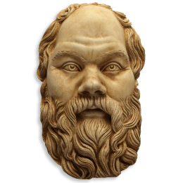 Tento filosof žil v letech 469-399 př. n. l. Vynikal svou morálkou, kterou neváhal odvážně šířit. Byl lživě obviněn z toho, že kazí mládež a neuznává bohy, a poté odsouzen k smrti. Ctil však zákony athénské společnosti a přijal smrt se stejným klidem a odvahou, s jakou prožil celý svůj život. Originál mramorové masky ze 3. st. př. n. l. byl nalezen v Efesu v Malé Asii.